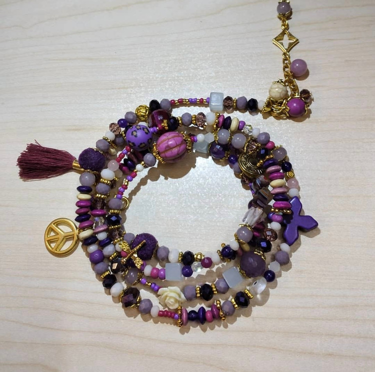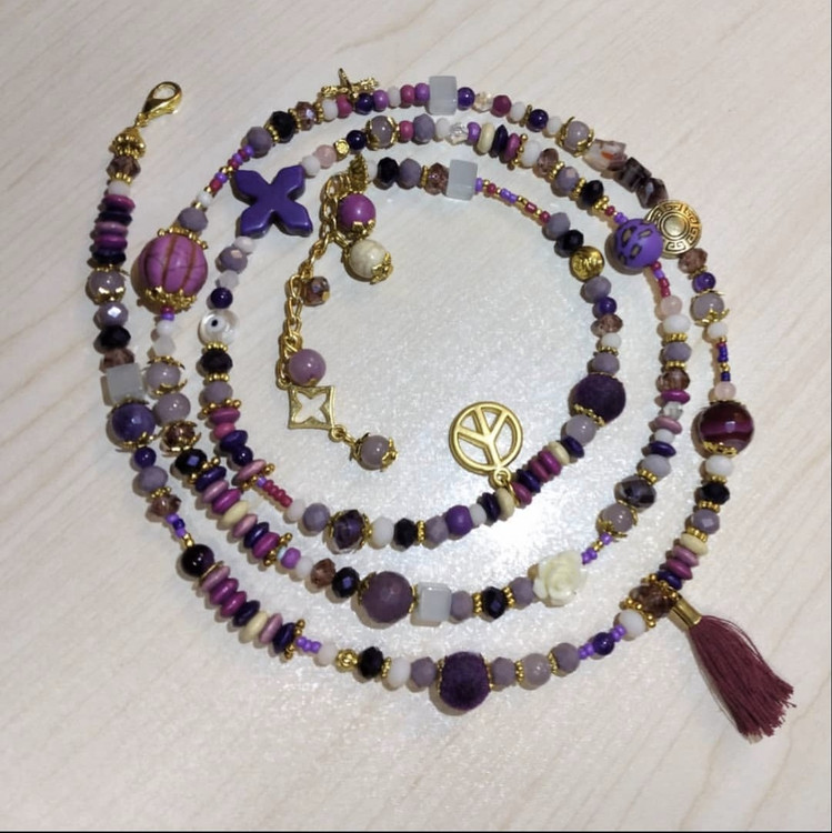 استفاده شده از منجاق،سنگ، کریستال، آویز استیل و...