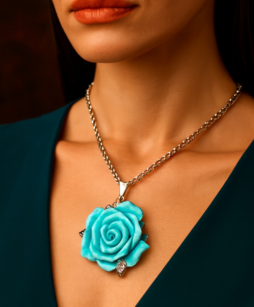 اکسسوری پلاک گرنبند گل فیروزه ایی